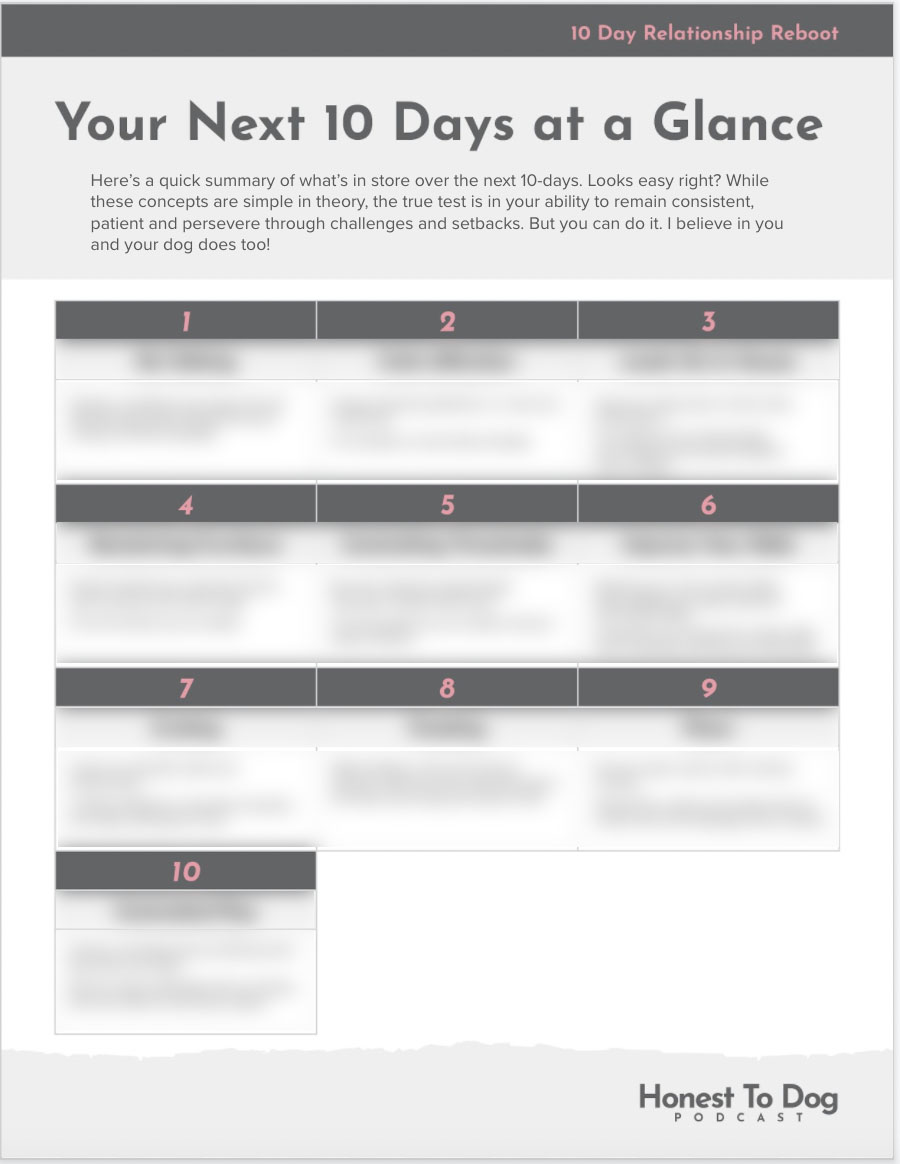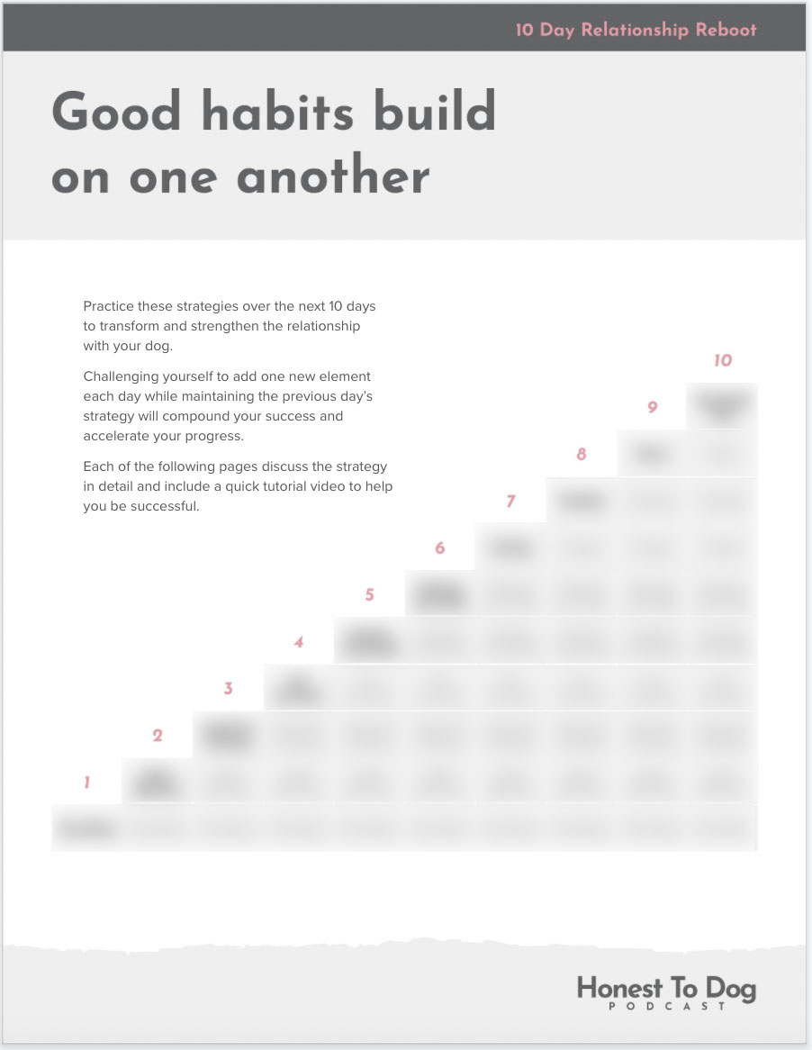 When you join the Relationship Reboot, you get access to daily challenges, videos, and an e-book to put you on the path to strengthen or rebuild your connection to your dog in 10 Days.